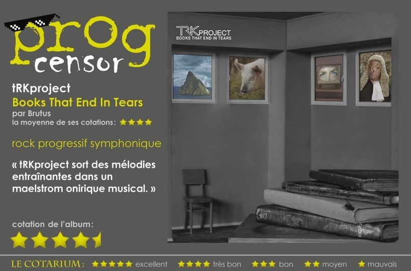 tRKproject est le groupe de Ryszard Kramarski, claviériste de Millenium, fantastique compositeur, sortant ici son 5e album, débuté en 2010; un side-project à deux voix pour le chant, utilisant de grandes pistes musicales et des réminiscences avouées du Pink Floyd, du Camel, des solos à la Marillion jouissifs, prog et mélo! 4 suites tirées de 4 livres cultes de W. Golding, F. Kafka et G. Orwell avec un lien de près ou de très près avec l’actualité; le titre renvoie selon moi en clin d’œil à sa dernière pochette avec ses larmes. À noter l’aide de Marcin de Moonrise, Grzegorz de Loonypark et Krzysztof de Millenium.